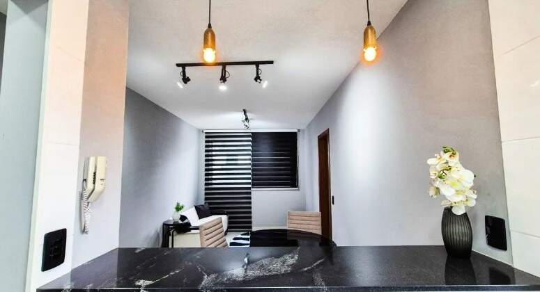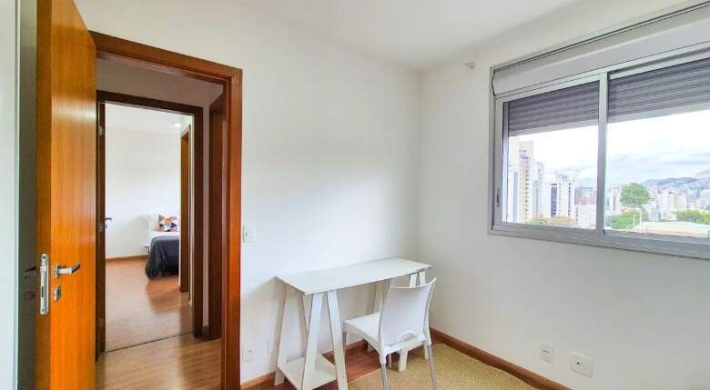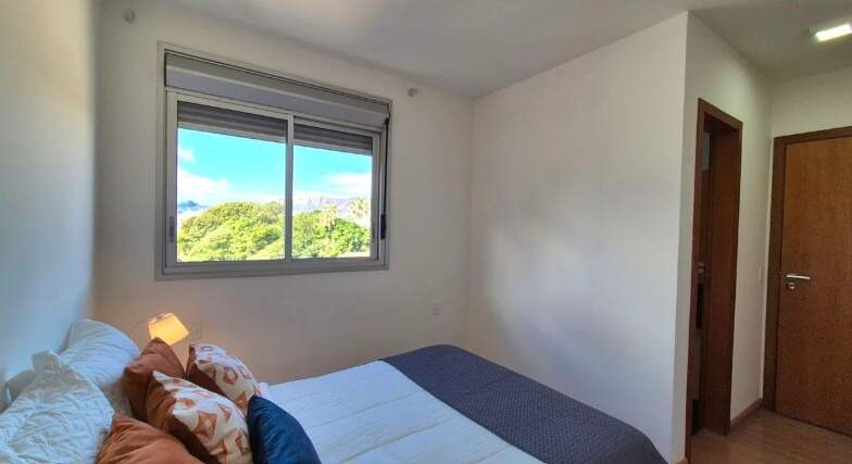 Descritivo do imóvel: Sala ampla, rebaixamento em gesso, iluminação planejada, 02 quartos confortáveis com armários, piso em laminado de madeira e janelas com venezianas integradas sendo 01 suite, banheiro social, cozinha espaçosa estilo americana com bancadas em granito e armários planejados e área de lavanderia Banheiros com bancada em granito, espelho, armário e box em blindex Fechadura digital 02 vagas de garagem em linha cobertas e demarcadas *Com mobília 6.500,00 Empreendimento: Elevadores Torre única Hall social Fachada revestida Projeto paisagístico Sistema de segurança Facilidade de acesso próximo da avenida Raja Gabaglia Localização privilegiada perto de vários tipos de serviços e comércios Área de lazer: Piscina Academia Salão de festas Área livre extensa